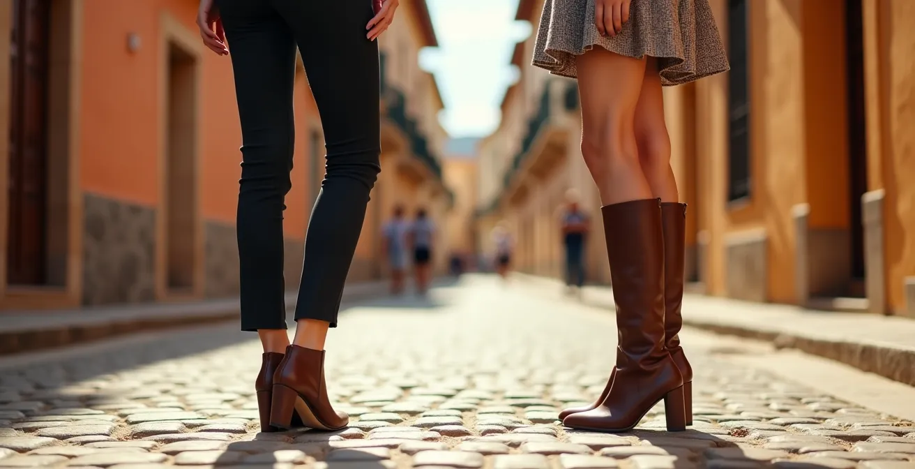 El dilema entre botines y botas altas para mujeres de menos de 1,60 m no se resuelve con una única respuesta, sino con estrategia. El verdadero secreto para no acortar la pierna no reside en la altura de la caña, sino en crear una ilusión óptica de continuidad. La clave está en dominar la armonía del color entre tu calzado, tus medias y tu pantalón, y en elegir elementos —desde el tipo de tacón hasta el corte del vaquero— que construyan una línea vertical ininterrumpida, alargando visualmente tu silueta.