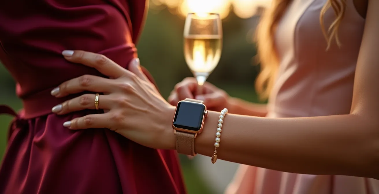 Recibes la invitación a una boda y, tras la alegría inicial, una pequeña duda tecnológica asalta tu mente: ¿qué hago con mi smartwatch? Para ti, no es un simple capricho; es el centro de tu bienestar conectado, el dispositivo que monitoriza tu sueño, tu estrés y tu actividad. Quitarlo durante más de 24 horas significa perder datos valiosos y romper una rutina de salud cuidadosamente construida. Los consejos habituales suelen ser simplistas: «cómprale una correa de metal» o, peor aún, «déjalo en casa, es un evento elegante». Estas soluciones ignoran el verdadero dilema: el conflicto entre la etiqueta social tradicional y un estilo de vida moderno y basado en datos.