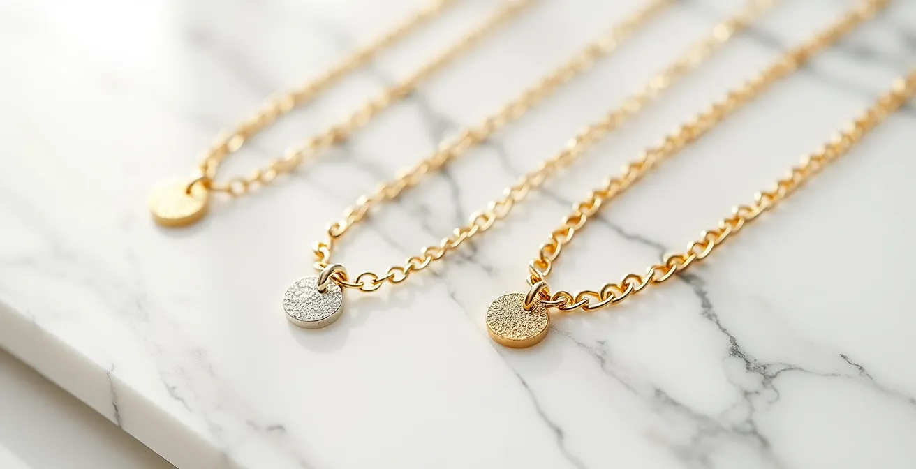 Para una joya minimalista destinada a un uso continuo 24/7, la elección entre oro macizo y baño de oro no es una opción, es una sentencia. Cualquier tipo de recubrimiento, por bueno que sea, está condenado a desaparecer con la exposición constante al agua, jabones, cremas y la propia fricción de la piel. Optar por un baño de oro para una pieza que no piensas quitarte es, desde una perspectiva financiera, una mala decisión, ya que adquieres un activo con una obsolescencia programada.